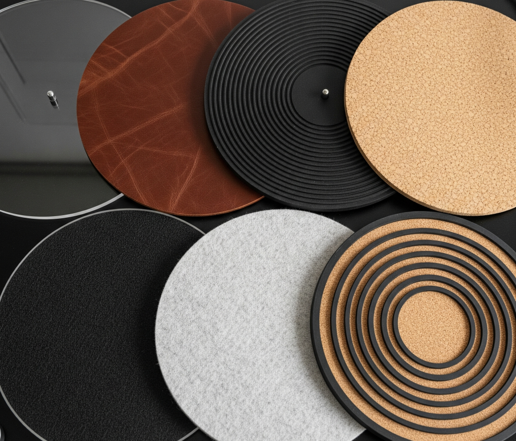 Acrylic mats are recommended for audiophiles prioritising static control and sound clarity. They dissipate static, enhance vibration damping, and are durable and easy to maintain; however, they come at quite a high cost.